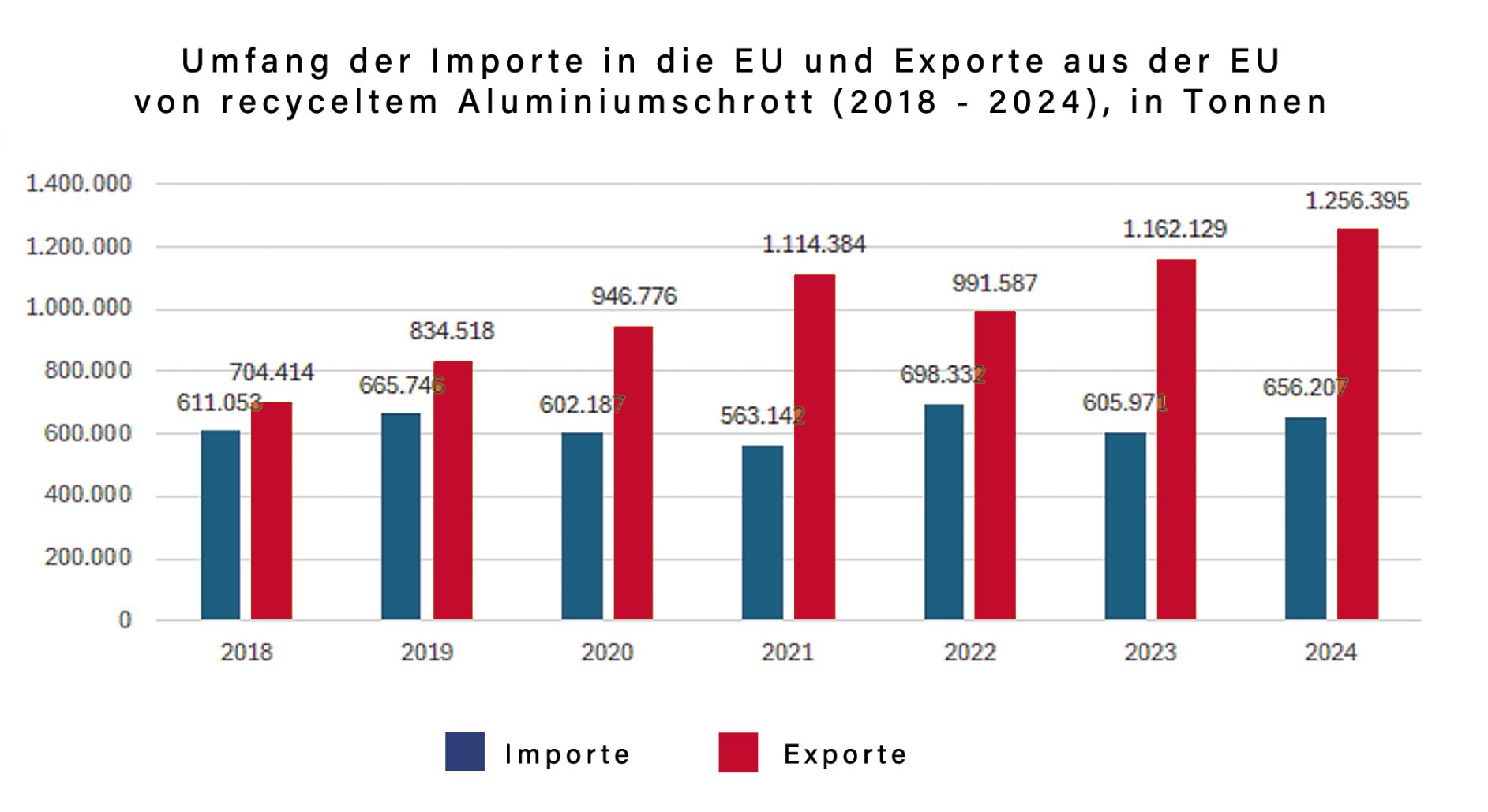 eUROPÄISCHER Außenhandel mit recyceltem Aluminiumschrott in den Jahren 2018 bis 2024