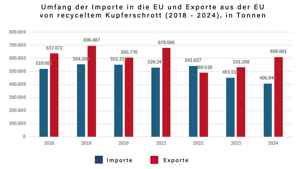 eUROPÄISCHER Außenhandel mit recyceltem KUPFERSchrott in den Jahren 2018 bis 2024