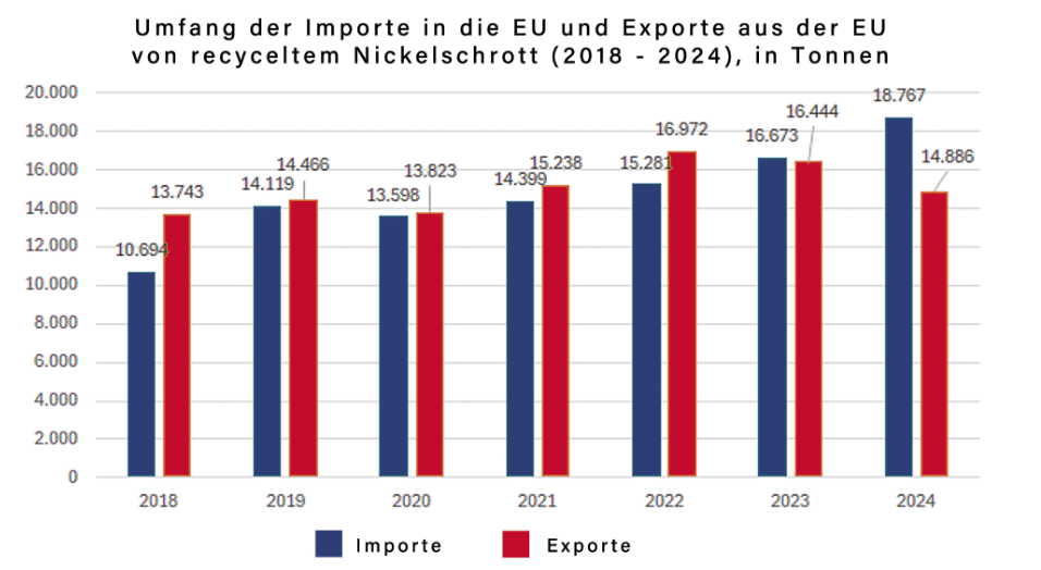 eUROPÄISCHER Außenhandel mit recyceltem NICKELSchrott in den Jahren 2018 bis 2024