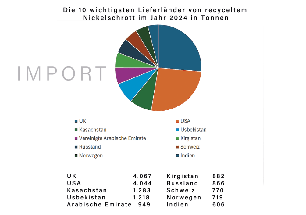 Die 10 wichtigsten Lieferanten von recyceltem Nickelschrott nach Europa im Jahr 2024