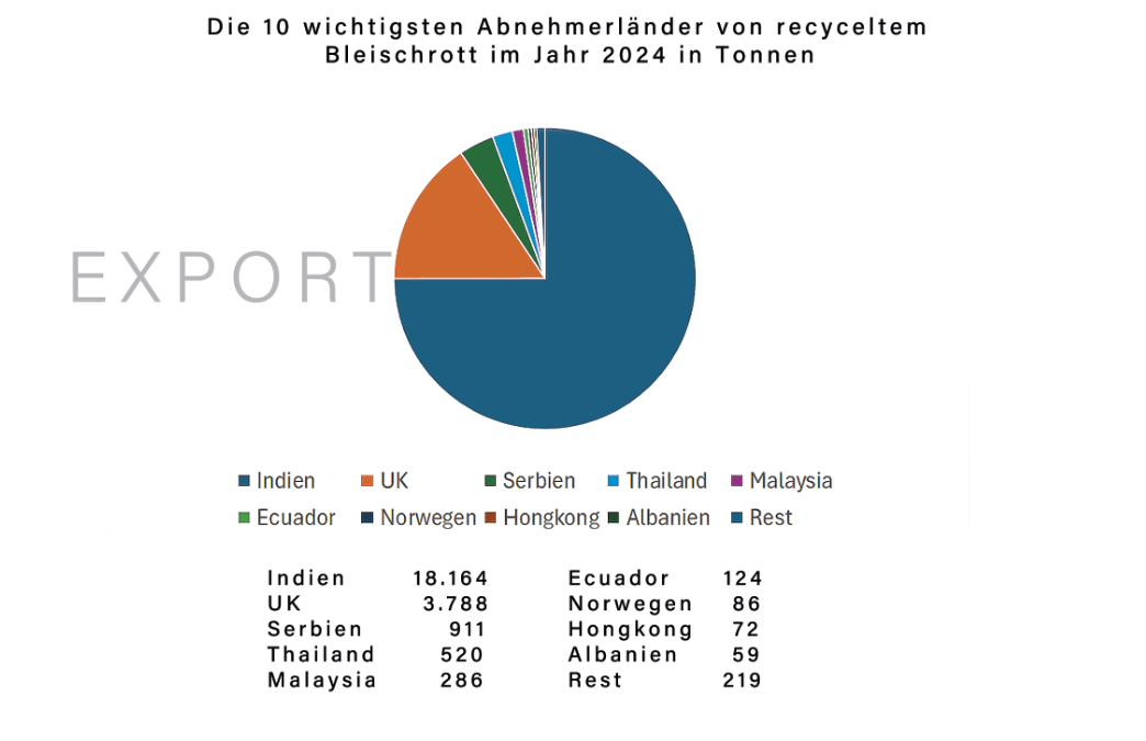 Die 10 wichtigsten Abnehmer von recyceltem BLEIschrott aus Europa im Jahr 2024
