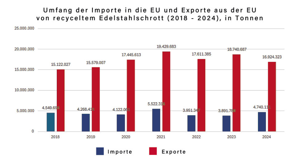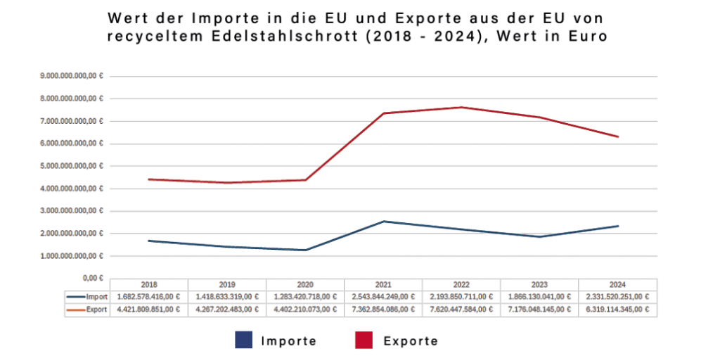 eUROPÄISCHER Außenhandel mit recyceltem STAHLschrott in den Jahren 2018 bis 2024