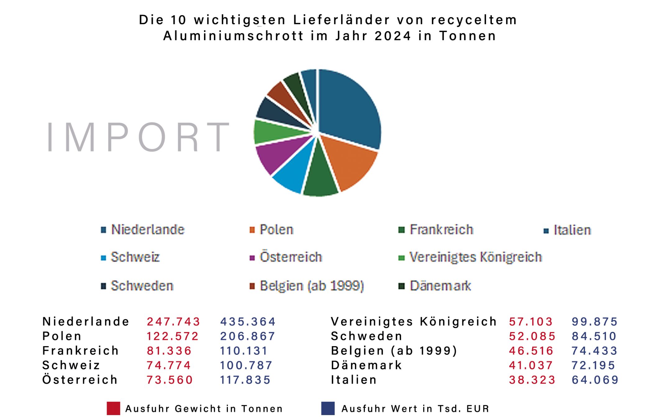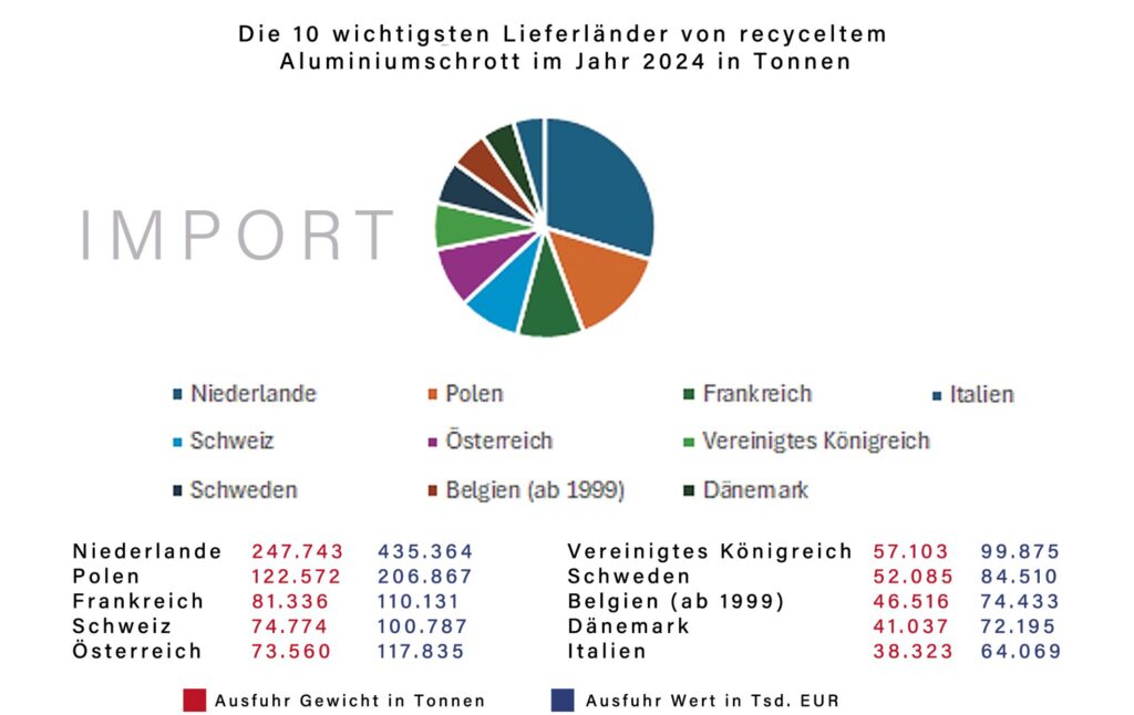 Die drei wichtigsten Lieferländer von recyceltem Aluminiumschrott nach Deutschland waren im Jahr 2024 (in Tonnen)