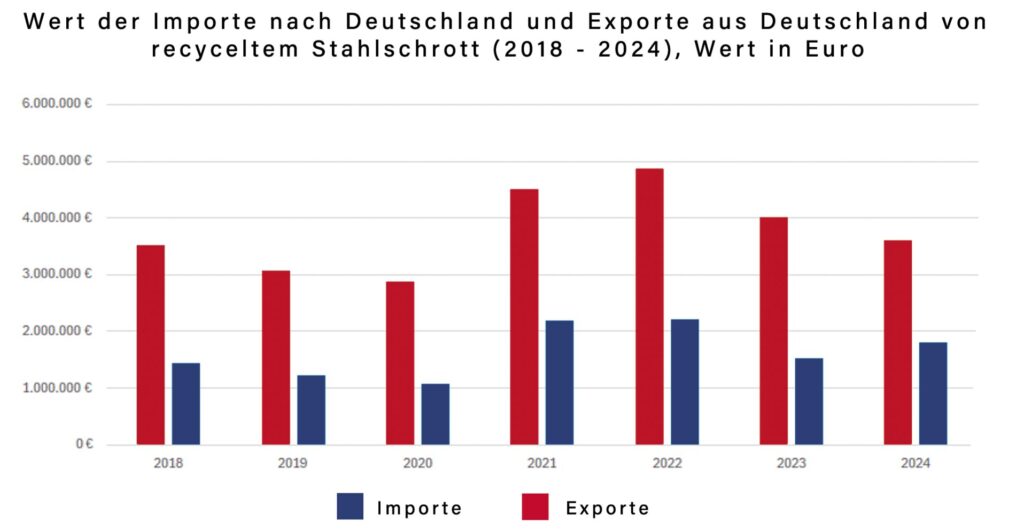 Die Tatsache, dass die Niederlande und Italien die größten Abnehmerländer für recycelten Stahlschrott aus Deutschland sind, zeigt eindrücklich, dass deutsche Schrotte im internationalen Markt stark nachgefragt werden – sowohl wegen ihrer hohen Qualität als auch wegen der Verlässlichkeit der deutschen Lieferketten. Der Export in benachbarte Länder mit eigener Stahlindustrie belegt, dass Deutschland über eine leistungsfähige und differenzierte Sammel- und Aufbereitungsinfrastruktur verfügt. Auch beim Import zeigt sich die enge europäische Verflechtung: Länder wie Tschechien, Polen oder die Niederlande liefern erhebliche Mengen an Stahlschrott nach Deutschland. Diese Handelsströme stärken den innereuropäischen Stoffkreislauf und sichern die Versorgung der Elektrostahlwerke im Inland mit geeignetem Sekundärrohstoff.